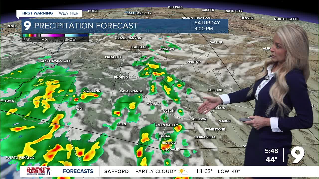 Chances for precipitation holds off for much of southeastern Arizona until Saturday afternoon and evening, though showers may begin to move into western portions of Arizona today.