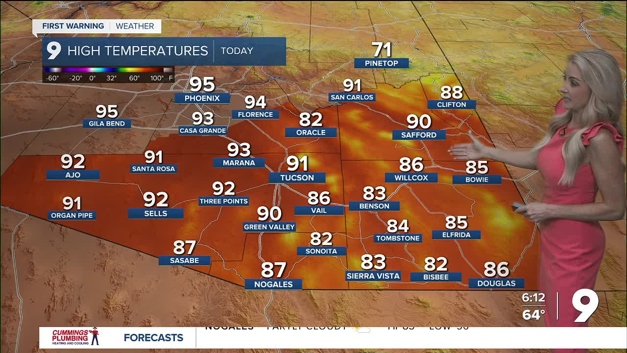 TUCSON, Ariz. (KGUN) — We will see a few high clouds later in the day, but afternoon highs will continue to soar 6-10° above normal.
