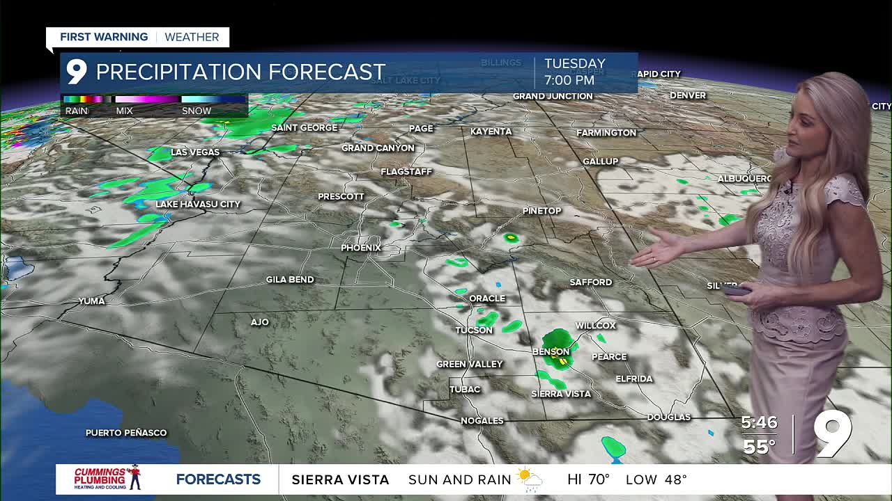 TUCSON, Ariz. (KGUN) — The bulk of moisture moving through the area today will likely stay southeast of Tucson, but we can't rule out some virga, or light sprinkles.