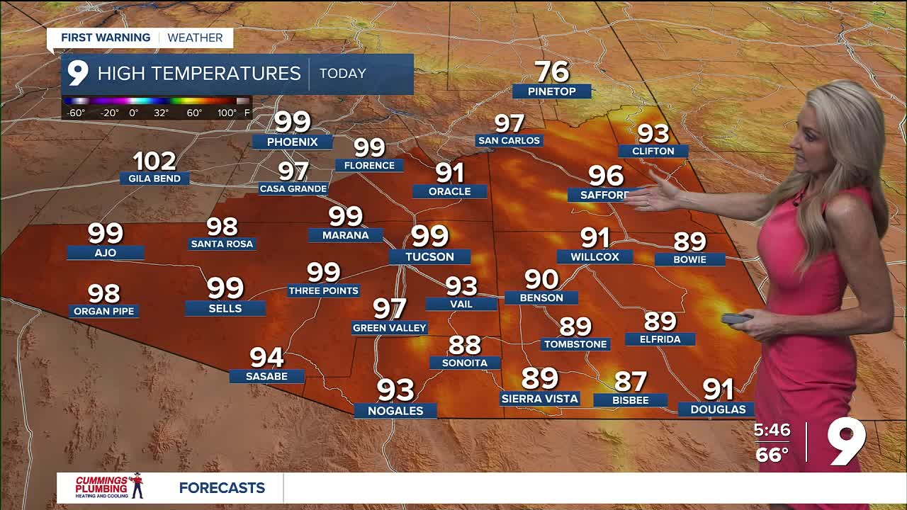 Tucson will be flirting with 100° through Friday, then cooling back down closer to near normal this weekend.