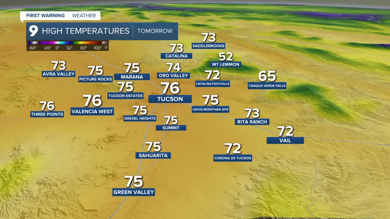 TUCSON, Ariz. (KGUN) — Above-average high temperatures and dry conditions continue Sunday, before cooling several degrees.