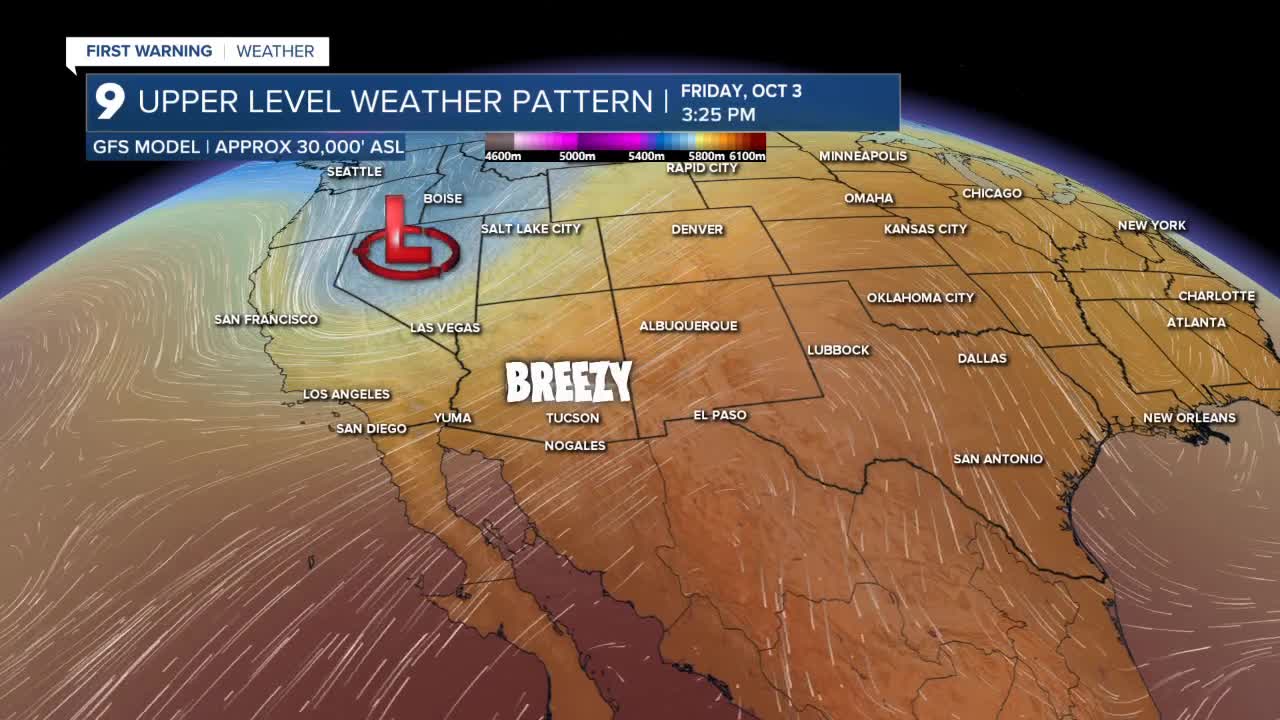 By the end of the week, low pressure moves closer to Arizona and will bring breezy conditions for Friday and Saturday.
