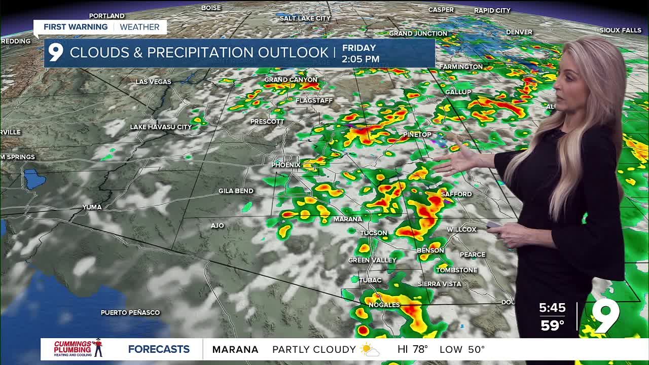 A cold and wet weather system is expected to make its way into Southeast Arizona Friday resulting in valley rain and high elevation snowfall. Isolated thunderstorms will also be possible with this system.