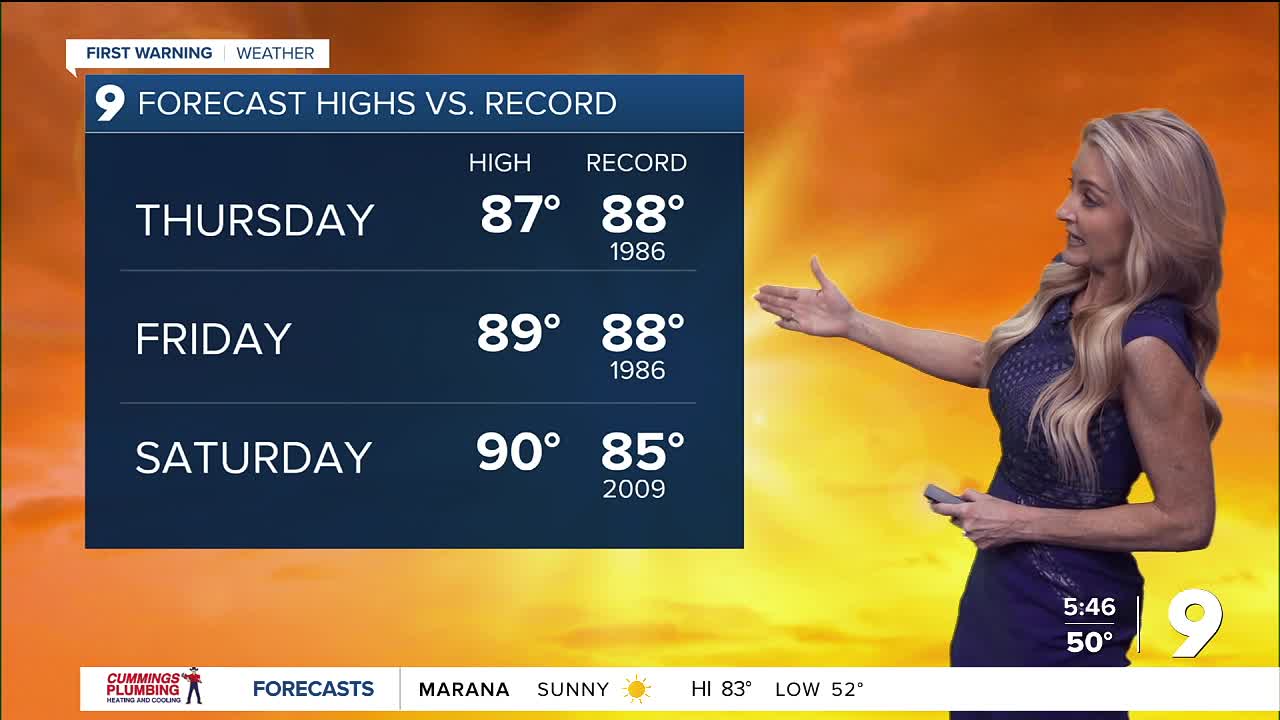 Tucson will not only see it's first 85° this week, but will likely see our first 90° along with near-record highs Thursday through the weekend.