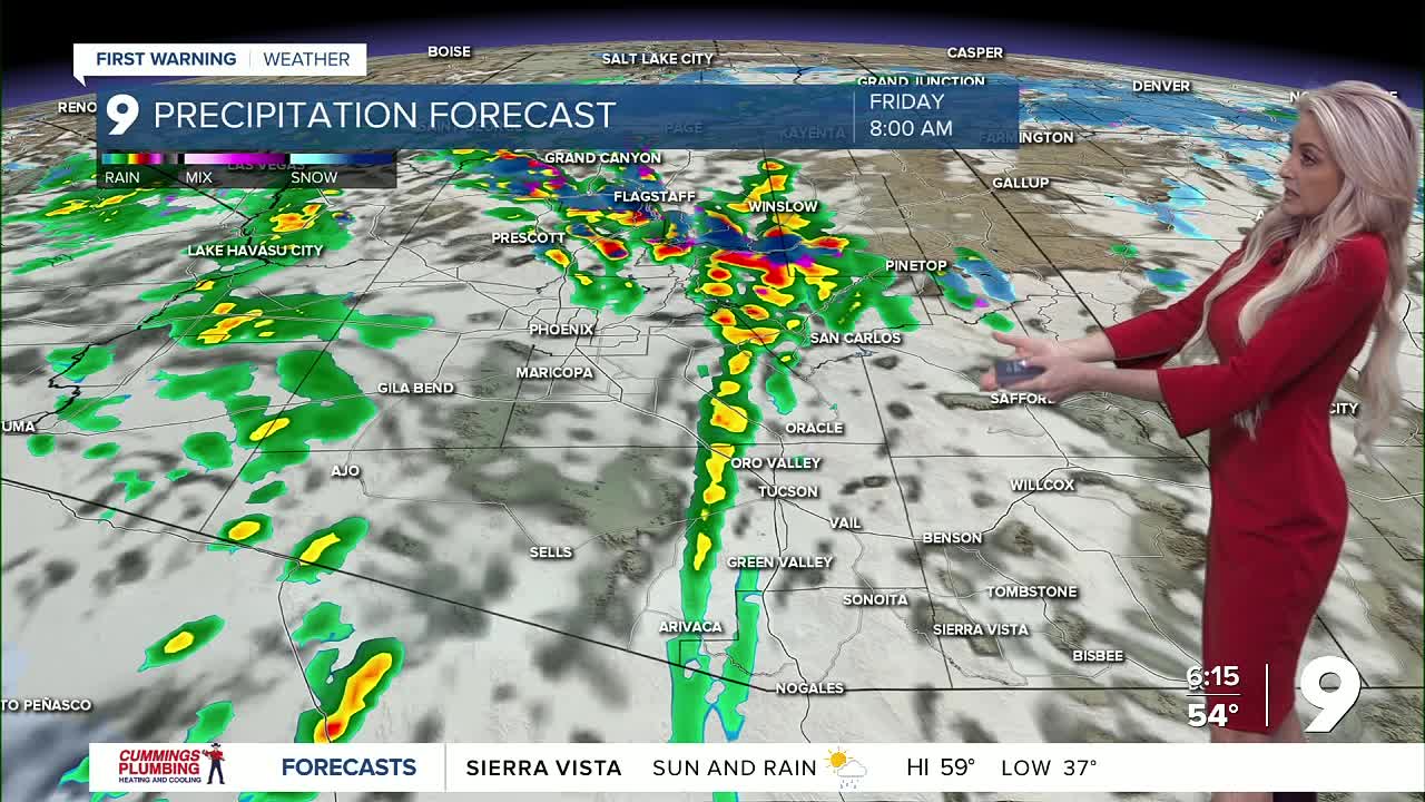 TUCSON, Ariz. (KGUN) — Showers and isolated thunderstorms will likely start this morning, and continue off and on through this evening.
