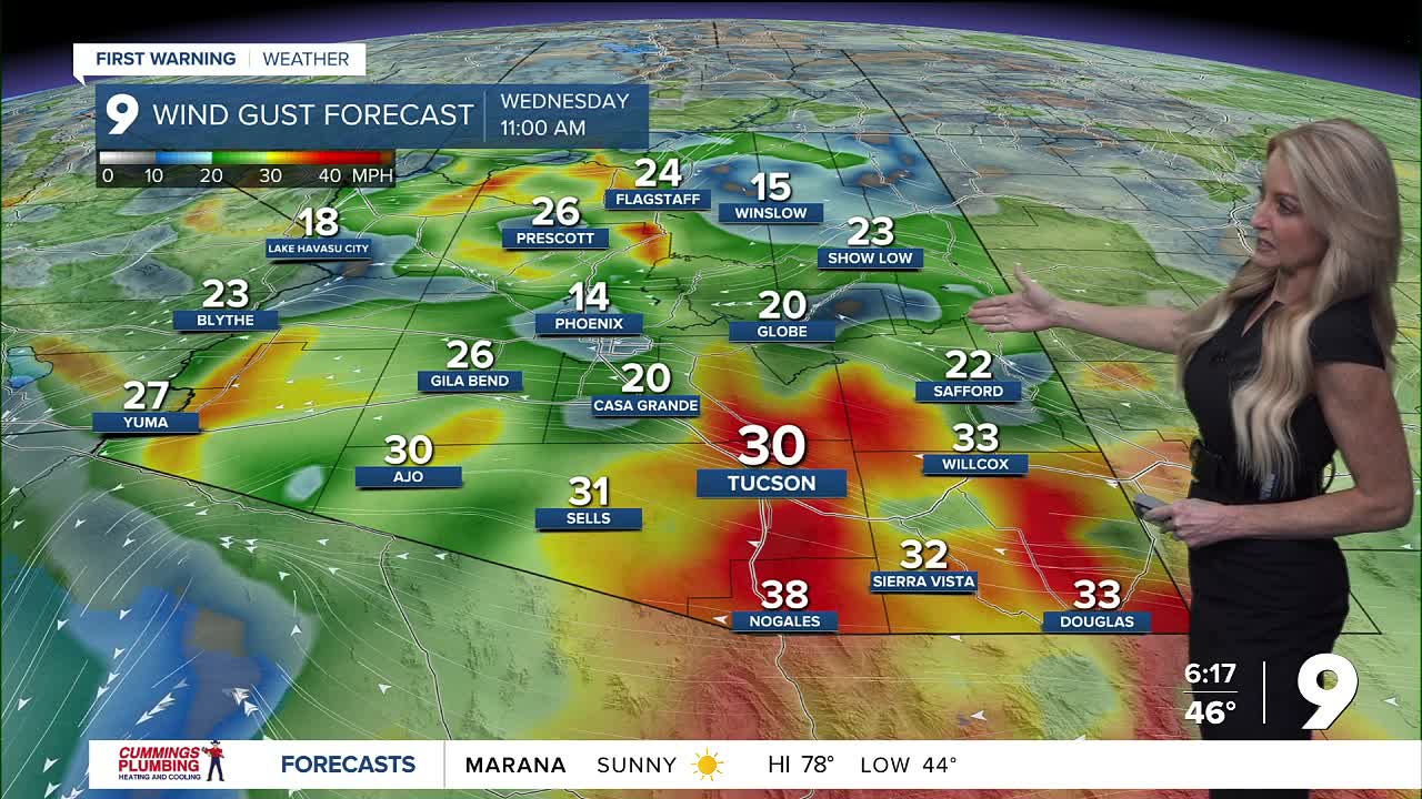 Easterly winds will pick up tomorrow into Thursday, especially in areas south and east of Tucson. Expect sustained winds between 10-25 mph, gusting 35-45 mph.