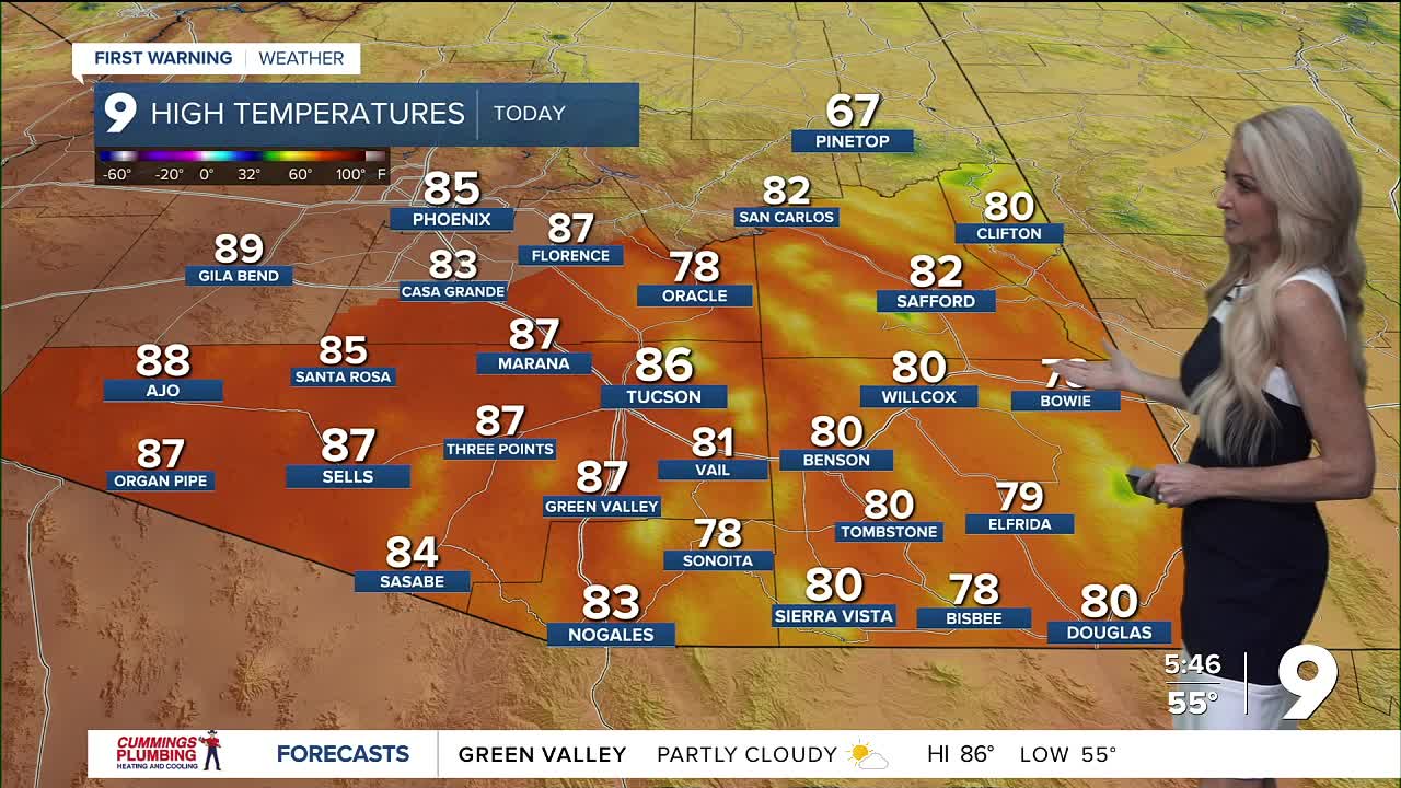 TUCSON, Ariz. (KGUN) — Partly cloudy and warm this afternoon, then becoming mostly cloudy by tonight.