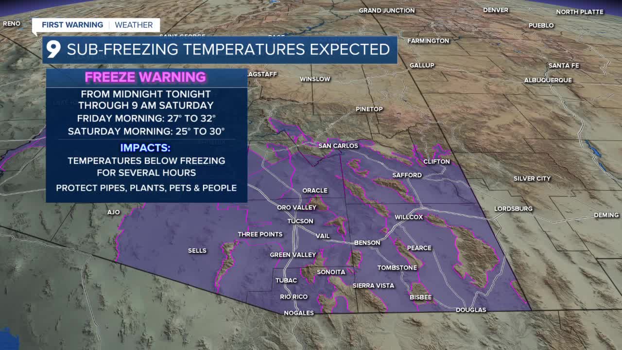 A Freeze Warning has been posted for most of southern Arizona, including Tucson, for Friday morning and Saturday morning.
