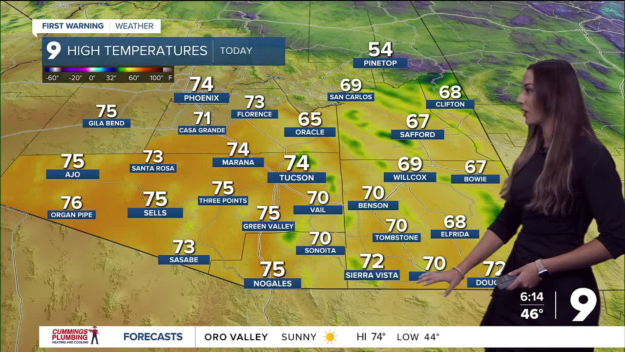 TUCSON, Ariz. (KGUN) — Expect calm and warm weather across southeast Arizona. High pressure is keeping things dry with light winds and a few high clouds.