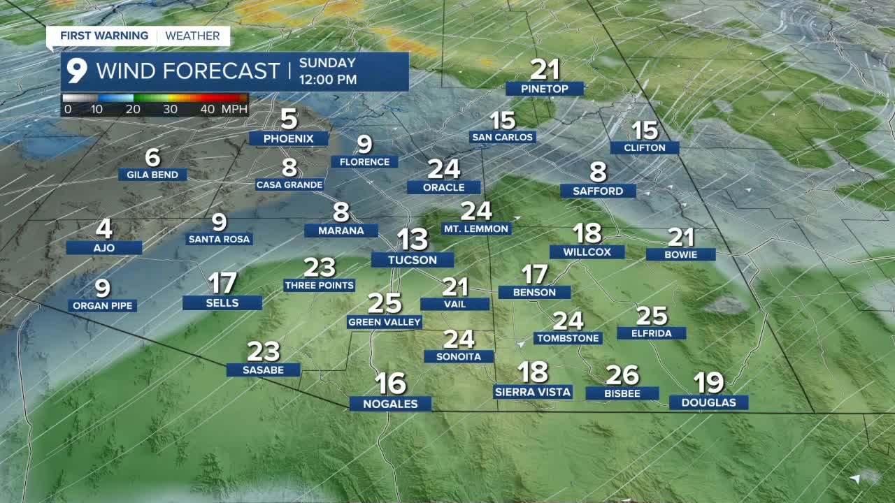 Morning temperatures will remain mild. Tucson is expected to start Thursday around 60 degrees, with most areas seeing similar lows. Southern locations such as Sasabe and Green Valley will be slightly cooler, with temperatures in the mid-50s.