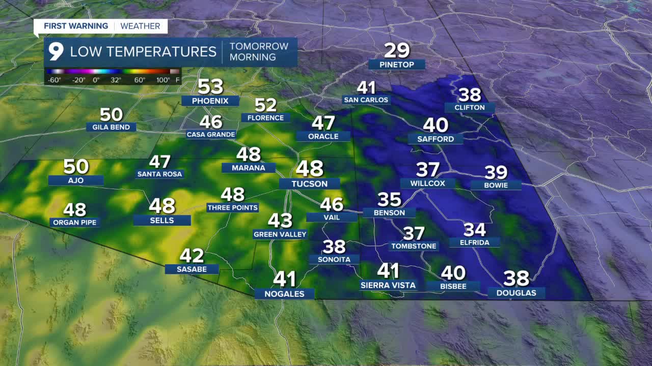 Despite the chilly starts, afternoons will feel much more like spring. Nearly all of southern Arizona is projected to reach at least the 70s. Tucson is forecast to hit 81 degrees, with much of Pima County climbing into the 80s.