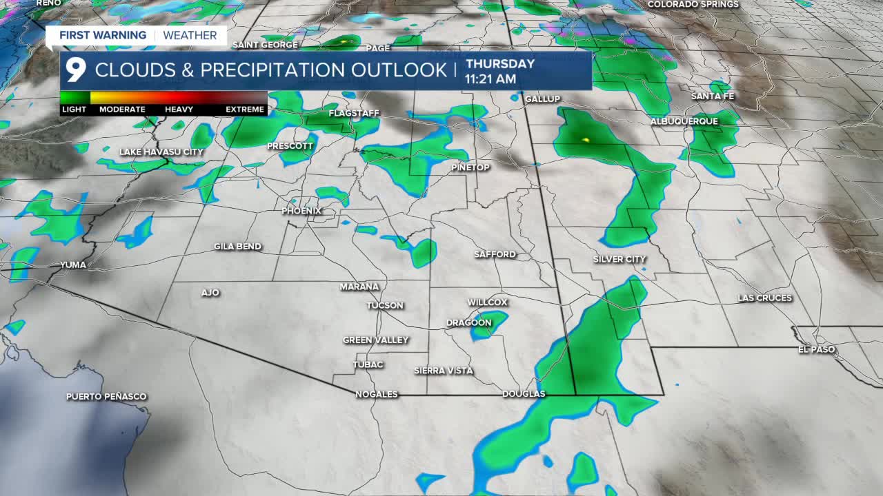 By Monday afternoon, highs will climb into the 80s across much of the region. Tucson is expected to reach a high near 85 degrees as above-normal warmth continues.